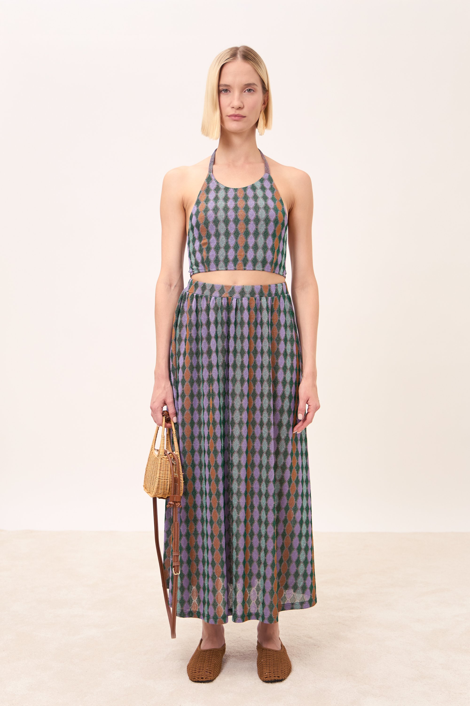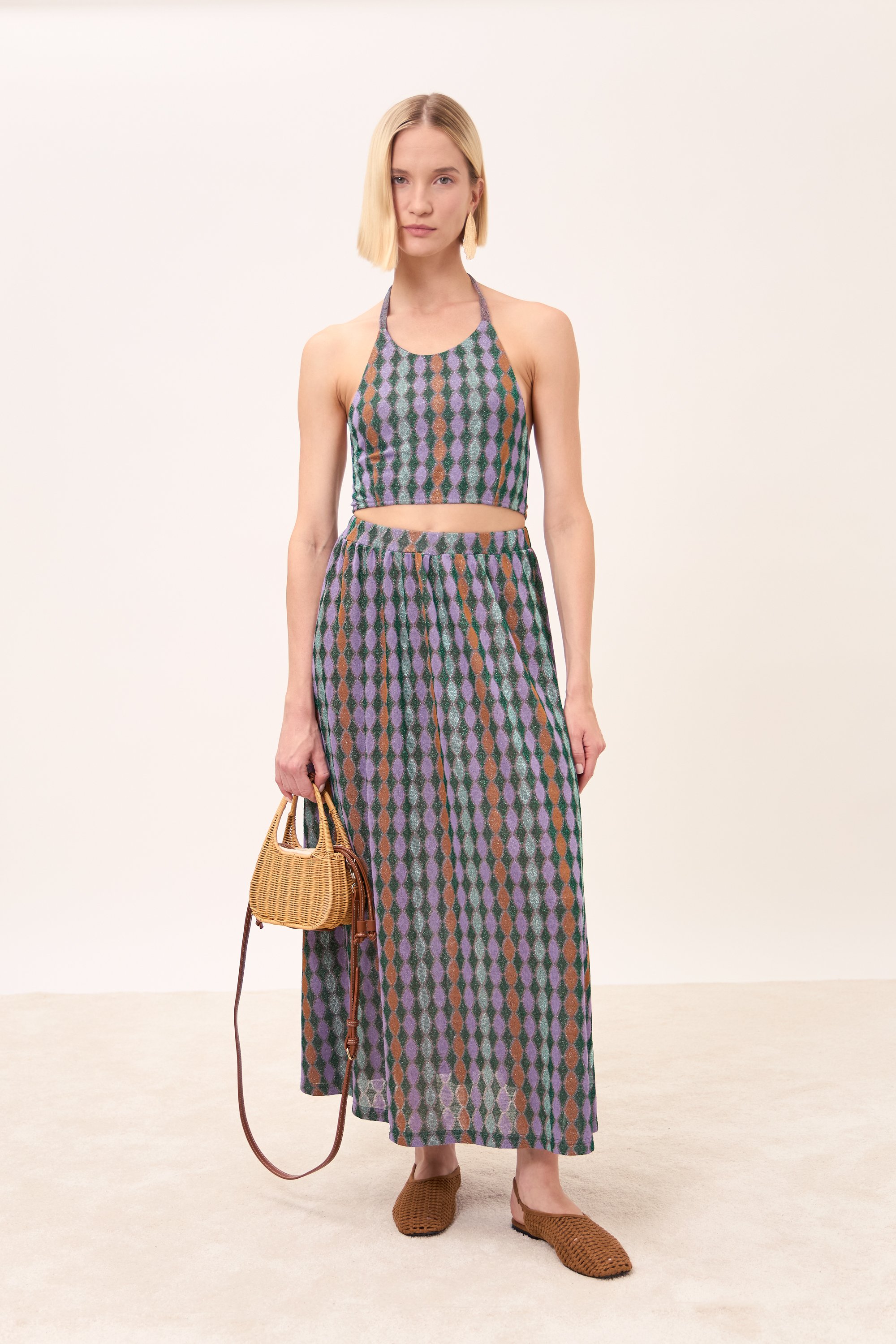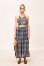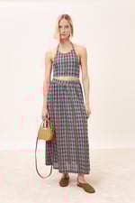 Gonna lunga con pieghe in vita.